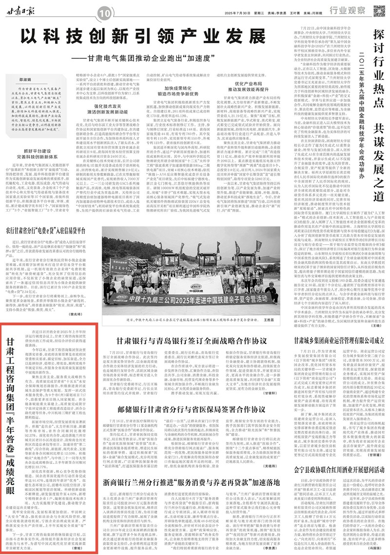 今年以來,甘肅工程咨詢集團堅決貫徹落實省委、省政府決策部署及省政府國資委相關(guān)要求,錨定目標、加壓奮進,全力以赴拼經(jīng)濟、穩(wěn)增長、增效益,順利實現(xiàn)半年既定目標,在服務(wù)全省高質(zhì)量發(fā)展進程中展現(xiàn)出新作為。