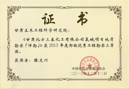 優(yōu)秀工程勘察三等獎