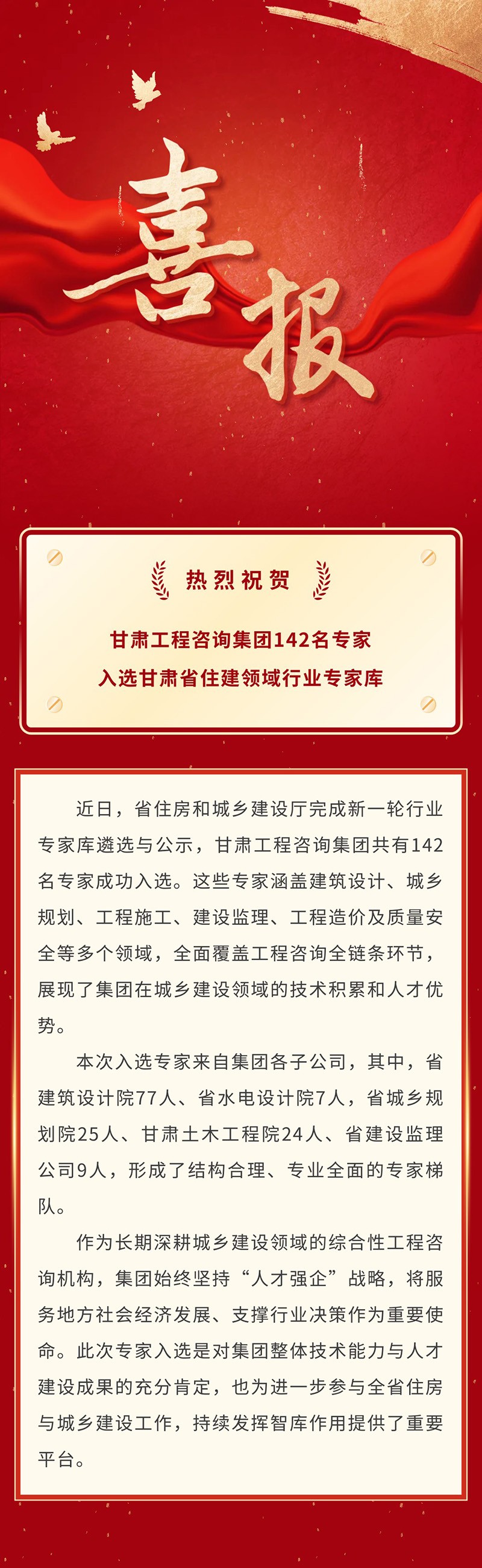 喜報 | 甘肅工程咨詢集團142名專家入選甘肅省住建領(lǐng)域行業(yè)專家?guī)?/span>