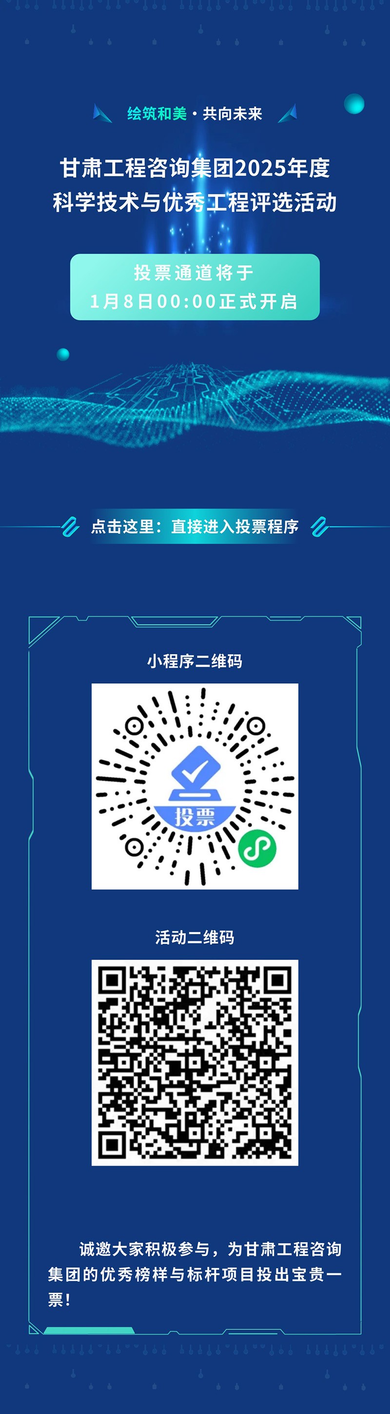 甘肅工程咨詢集團(tuán)2025年度科學(xué)技術(shù)與優(yōu)秀工程評(píng)選活動(dòng)投票通道即將開(kāi)啟