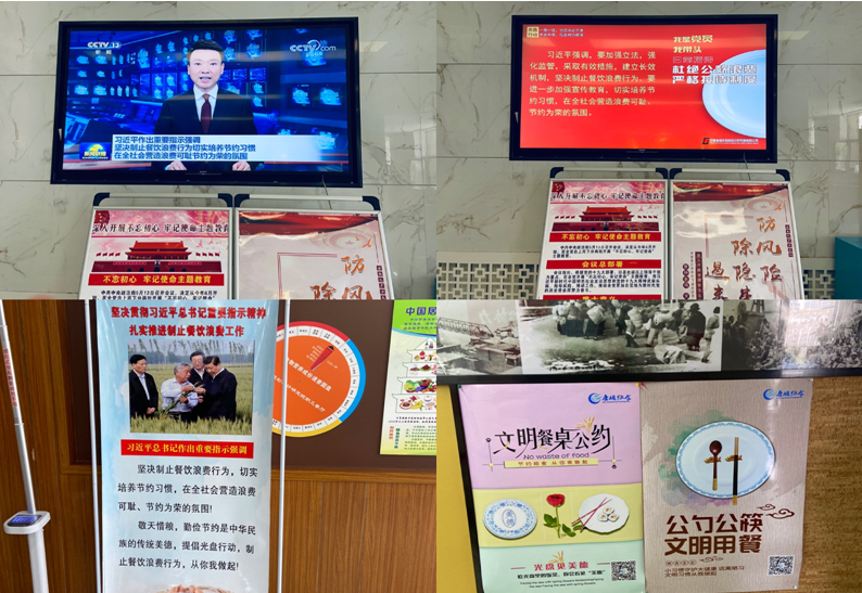 通過在公司一樓大廳的LED屏上滾動(dòng)播放習(xí)近平總書記提出杜絕餐飲浪費(fèi)的重要指示、制作播放關(guān)于節(jié)約用餐、文明用餐的PPT、在宣傳欄和食堂醒目位置張貼宣傳圖片和條幅標(biāo)語(yǔ)等,遏制“舌尖上的浪費(fèi)”,消除“剩宴”,最大限度減少餐飲浪費(fèi)。廣大黨員干部還簽訂《杜絕餐飲浪費(fèi)承諾書》,充分發(fā)揮黨員表率作用,以黨員帶動(dòng)群眾,在公司范圍內(nèi)營(yíng)造浪費(fèi)可恥、節(jié)約為榮的良好氛圍。