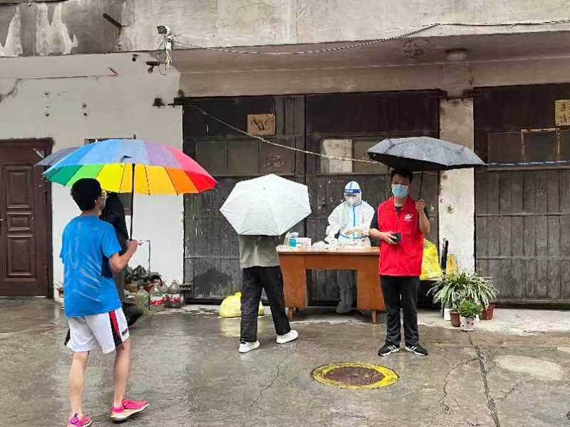 在高風(fēng)險社區(qū),規(guī)劃設(shè)計院第十六黨支部入黨積極分子劉偉正在執(zhí)行“封門”任務(wù)?!耙唤拥酱_診通知,我們就要連夜對密接住戶施行管控措施,工作時間是24小時隨時待命,防護服穿脫太麻煩,累了我找地方靠一會兒就行。”孫偉略帶疲倦地說道。高風(fēng)險區(qū)意味著與病毒更近距離的接觸,對志愿者的規(guī)范操作要求也更加嚴(yán)格。每一次敲門、登記、核對人數(shù)、掃碼做核酸等看似簡單的流程,他都會在腦海里反復(fù)演練。突然的封門,會有一些居民鬧情緒,面對激烈的言辭,他總能耐心安撫,爭取居民對防控措施更多的理解和支持??臻e時,他會拎著大袋小袋,給住戶送些必備物資,提醒他們做好防護,做些力所能及的事情。勇者不孤,劉偉僅僅是這支隊伍中的一分子,還有像武利平、楊致遠(yuǎn)、姚友龍、劉澤靖、孔利兵、巨斌、楊一、劉偉、滿子熠、李文磊、仲乃河、蘇曉文、魏翔等像他一樣的志愿者,正在社區(qū)疫情防控一線,默默地貢獻(xiàn)著自己的力量。他們有的是企業(yè)中層“一把手”,有的是建筑師,有的是規(guī)劃師,有的是財務(wù)管理人員……,但穿上白色的防護服、換上紅色的馬甲,他們就有了一個共同的名字——疫情防控志愿者。