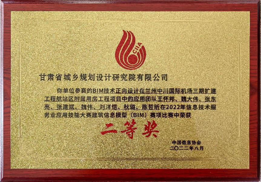 近日,甘肅省城鄉(xiāng)規(guī)劃設(shè)計研究院有限公司“BIM技術(shù)正向設(shè)計在蘭州中川國際機(jī)場三期擴(kuò)建工程航站區(qū)附屬用房工程項目的應(yīng)用”榮獲中國信息協(xié)會2022年信息技術(shù)服務(wù)業(yè)應(yīng)用技能大賽二等獎。此次獲獎是繼該BIM應(yīng)用項目榮獲2021年甘肅省第四屆BIM技術(shù)應(yīng)用大賽設(shè)計組一等獎之后,再次摘得的國家獎項,也是規(guī)劃設(shè)計院首次在國家級BIM技術(shù)應(yīng)用賽事中獲獎。