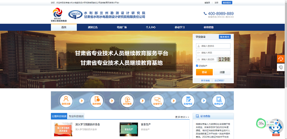 省水電設計院緊緊圍繞《甘肅省省級專業(yè)技術人員繼續(xù)教育基地管理辦法》規(guī)定,進一步完善服務體系,強化基地建設管理,與北京愛迪科森教育科技股份有限公司合作,積極開發(fā)在線學習平臺,建設具有水利水電專業(yè)特色的網絡學習中心,努力提高在線培訓和開展現(xiàn)代化遠程教育的能力。