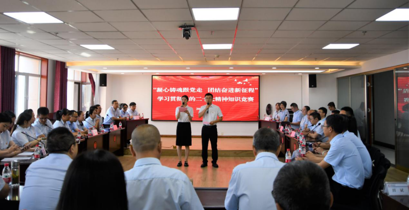 公司在家領(lǐng)導(dǎo)、機關(guān)全體干部職工、各事業(yè)部黨支部書記、黨務(wù)干事共計80余人參加了知識競賽。