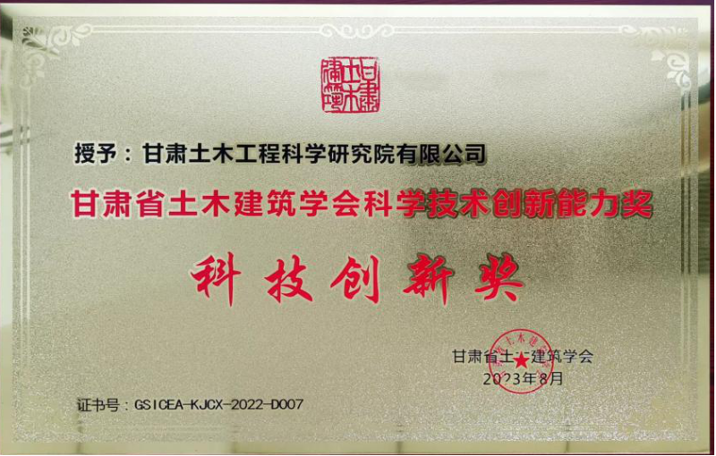 土木工程院榮獲甘肅省土木建筑學(xué)會科技創(chuàng)新獎