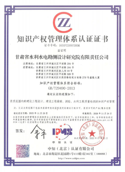 近日,省水電設(shè)計(jì)院順利通過《企業(yè)知識(shí)產(chǎn)權(quán)管理規(guī)范》(國家標(biāo)準(zhǔn)GB/T 29490-2013)的認(rèn)證評審工作,取得《知識(shí)產(chǎn)權(quán)管理體系認(rèn)證證書》,標(biāo)志著在知識(shí)產(chǎn)權(quán)創(chuàng)造、運(yùn)用、管理和保護(hù)方面邁上新臺(tái)階。