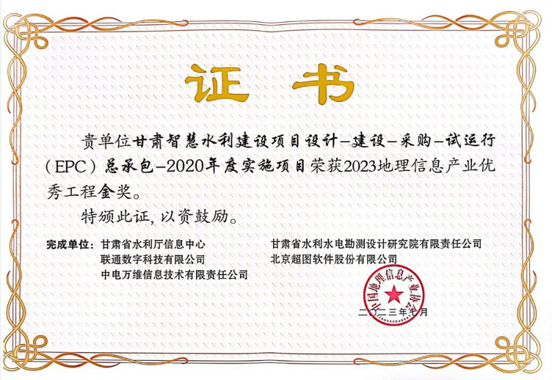 近日,第一屆中國測繪地理信息大會在浙江召開。由省水利廳實(shí)施、省水電設(shè)計院參與完成的“甘肅智慧水利建設(shè)項(xiàng)目設(shè)計-建設(shè)-采購-試運(yùn)行(EPC)總承包-2020年度實(shí)施項(xiàng)目”榮獲2023中國地理信息產(chǎn)業(yè)優(yōu)秀工程金獎。