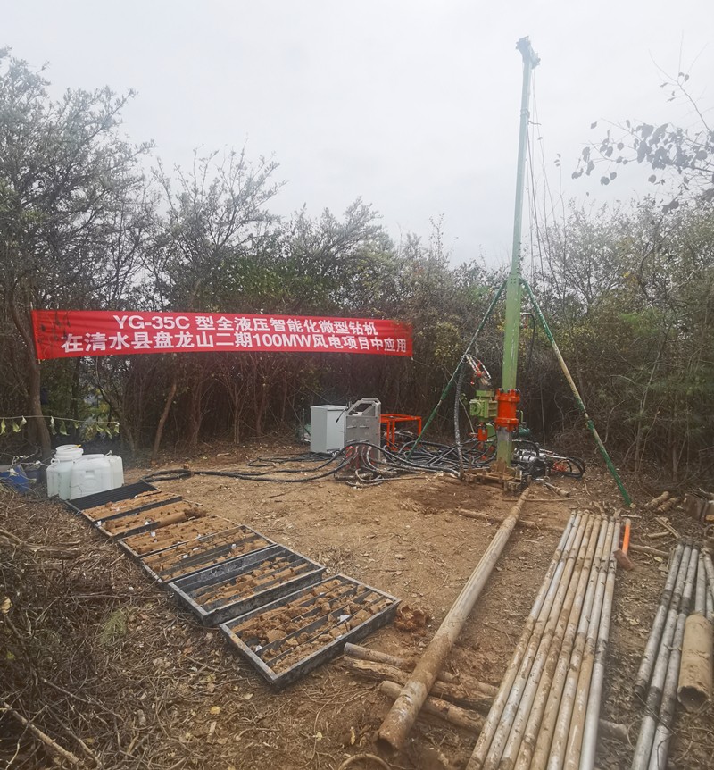 日前,省水電設計院研發(fā)的YG-35C型全液壓智能化微型鉆機,在清水縣盤龍山二期100MW風電項目中成功應用。