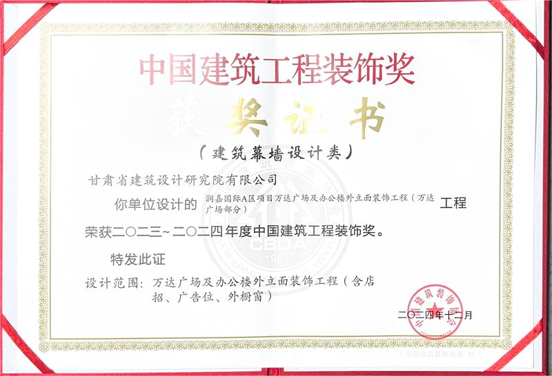 近日,中國(guó)建筑裝飾協(xié)會(huì)公布了2023-2024年度“中國(guó)建筑工程裝飾獎(jiǎng)”獲獎(jiǎng)名單,省建筑設(shè)計(jì)院承擔(dān)設(shè)計(jì)的“潤(rùn)嘉國(guó)際A區(qū)項(xiàng)目萬(wàn)達(dá)廣場(chǎng)及辦公樓外立面裝飾工程(萬(wàn)達(dá)廣場(chǎng)部分)”榜上有名。