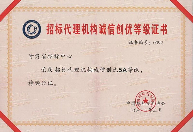 招標代理機構(gòu)誠信創(chuàng)優(yōu)登記證書